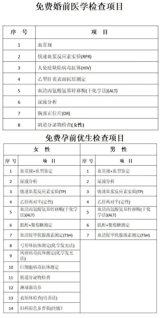 免费婚孕检项目