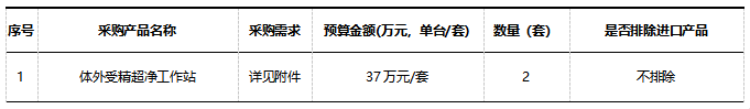政府采购进口产品意向需求公示(体外受精超净工作站)