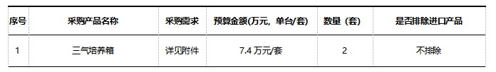 政府采购进口产品意向需求公示(三气培养箱)