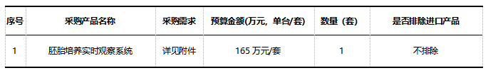 政府采购进口产品意向需求公示(胚胎培养实时观察系统)