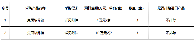 政府采购进口产品意向需求公示(桌面培养箱)
