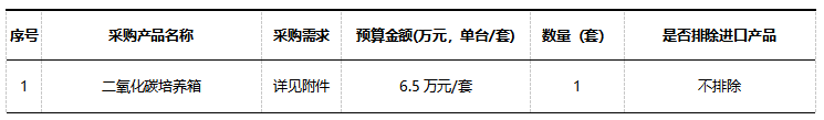 政府采购进口产品意向需求公示(二氧化碳培养箱)